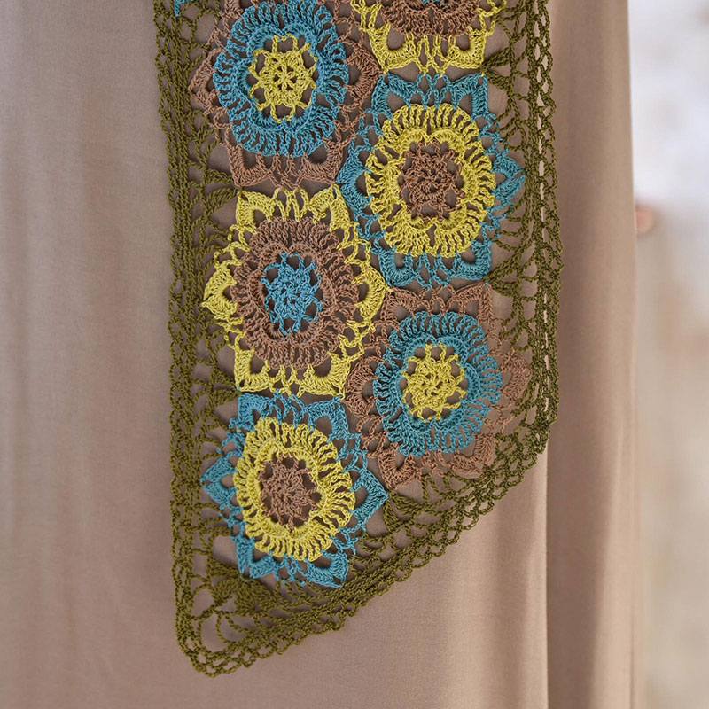 材料:オリムパス 金票40 番レース糸 明るい黄緑(283)・オリーブ色 (289)・ターコイズブルー(342)・茶色(736)各20g/各2 玉。