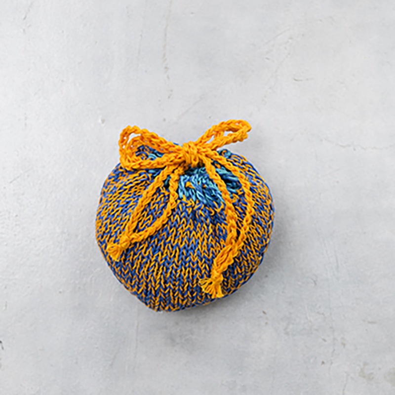 材料:ラナガット ケーブル5 青緑(8883)45g/1玉、青(6596)40g/1玉、オレンジ色(6569)35g/1玉。