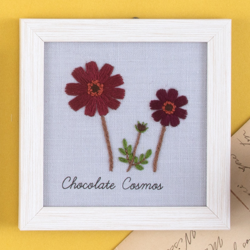 【フレームつき】【キット作り方つき】青木和子さんが描く季節の花シリーズより、秋冬の作品。図案印刷済み布にほぼ基本のステッチで刺すので、初心者の方でもOKです。作ってすぐに飾れるナチュラルなフレームつき。