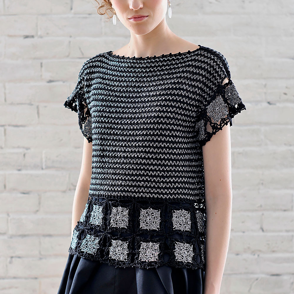 材料:ハマナカ㈱ リッチモア カメオ 黒(54)150g=6玉 サスペンス シルバーラメ・黒ミックス(10)90g=4玉