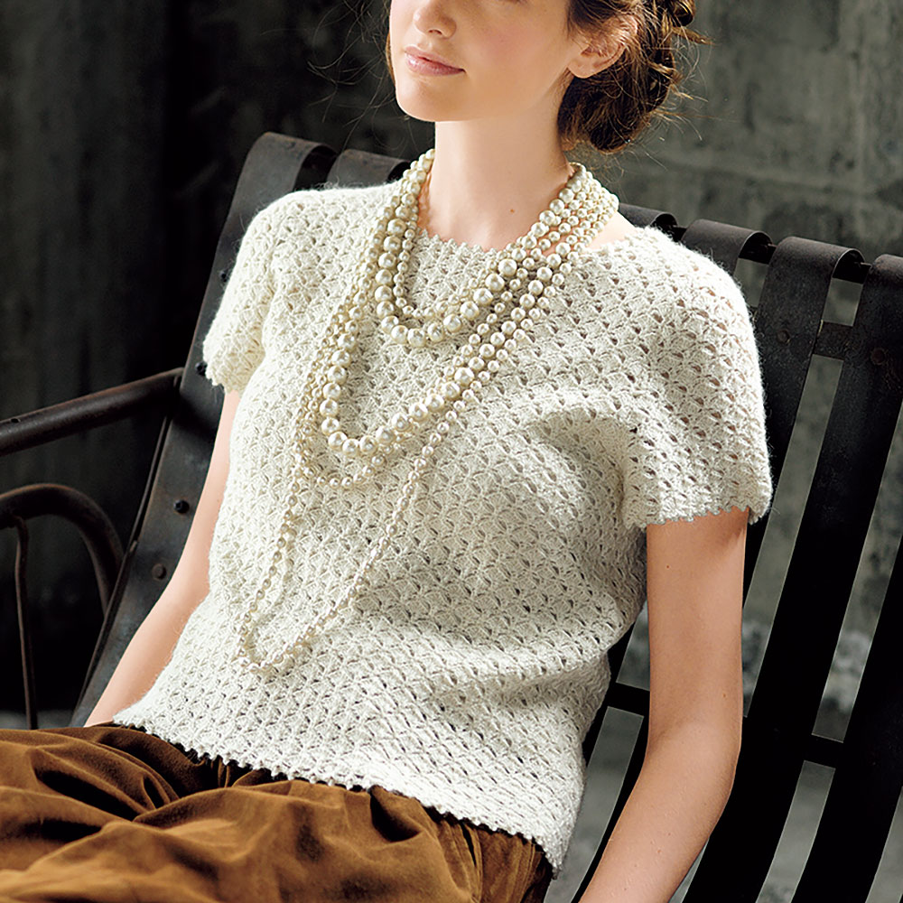 合細の上質アルパカヤーンで丹念に編んだかぎ針あみの半袖プル。着心地は抜群でジャケットのインにも使えるベーシックさがうれしい。