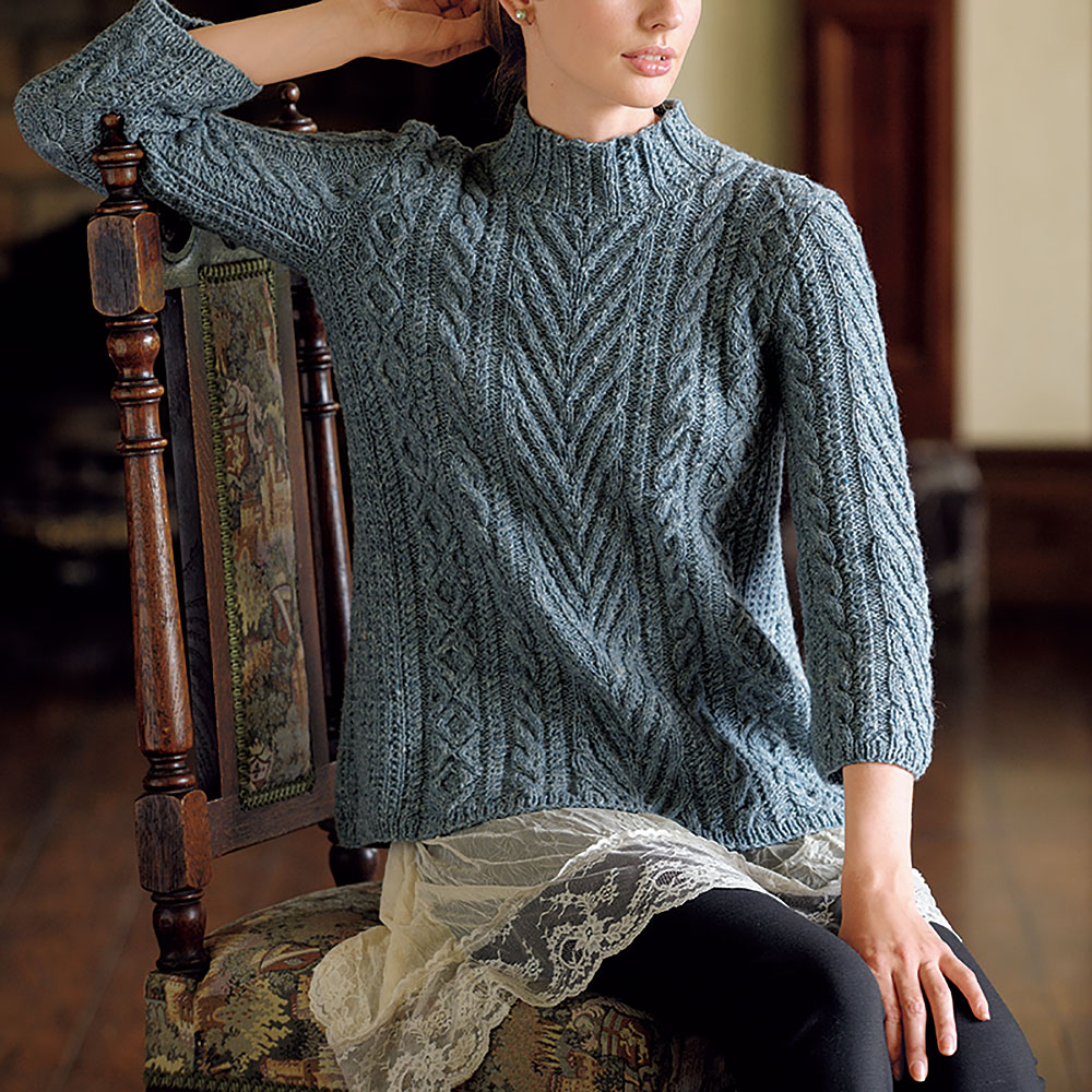 お洒落な人には常に気になるツイードヤーン。今シーズン注目のキャメルで編んだハイネック・プル。7分袖や裾広がりのシルエットがモダンでエレガントです。