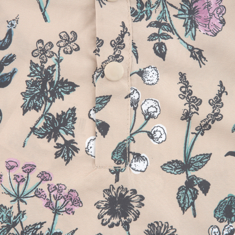 【限定70】【完成品】長く愛され続けるかっぽう着をおしゃれに。手描き風の野花柄がモダンです。ゆったりめなので重ね着もOK。両サイドにポケットがついています。
