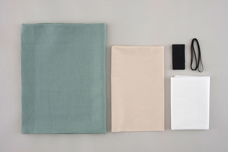 裏地、接着芯、サイズ調節用のリボンや平ゴムも入っているので、新たに材料を準備する必要はありません。