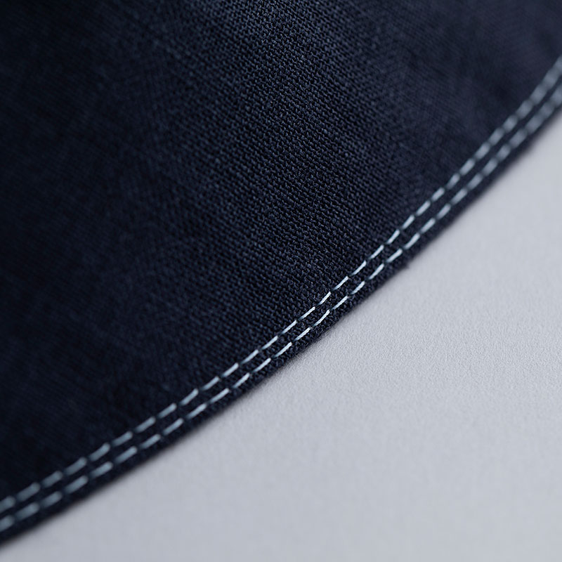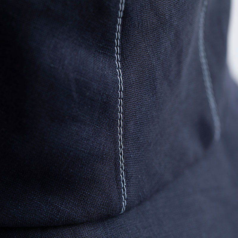 クラウン、ブリムに入れるステッチは、帽子を仕立てる上での大切なポイントになっているのはもちろん、目立つ色糸で入れることで、デザイン的にもアクセントポイントに。