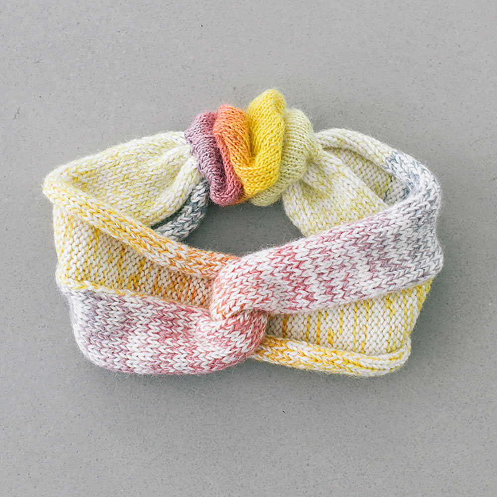 メリヤス編みだけで編めるヘアバンド。シンプルなコーディネートのアクセントになる、きれいな色やニュアンスのある糸を選んで。