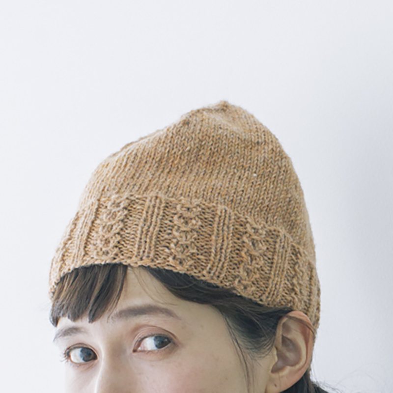 「ノット編み」でゴム編みにチャレンジ。簡単なのに凝って見えるおすすめの編み方です。トップの減らし目部分の美しいラインにも注目。