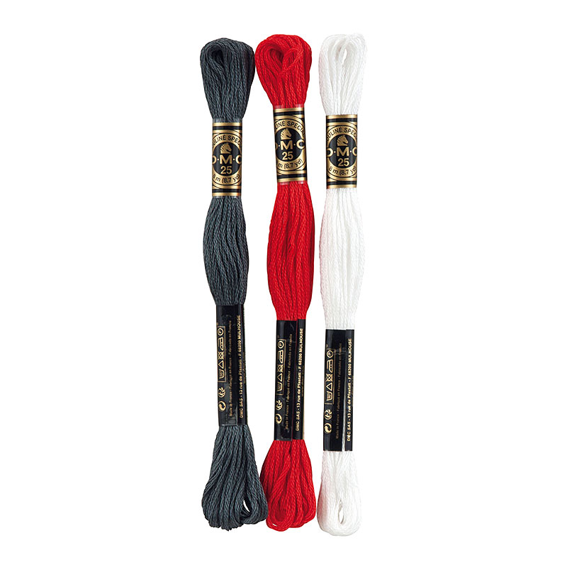 DMC25番刺しゅう糸(糸長8m、6本より)3色各1束、14ctアイーダ(38.1×45.7cm)1枚