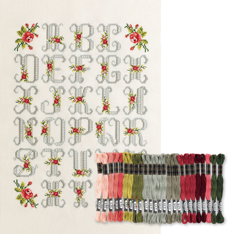 バラ文字のクロスステッチサンプラー 糸セット