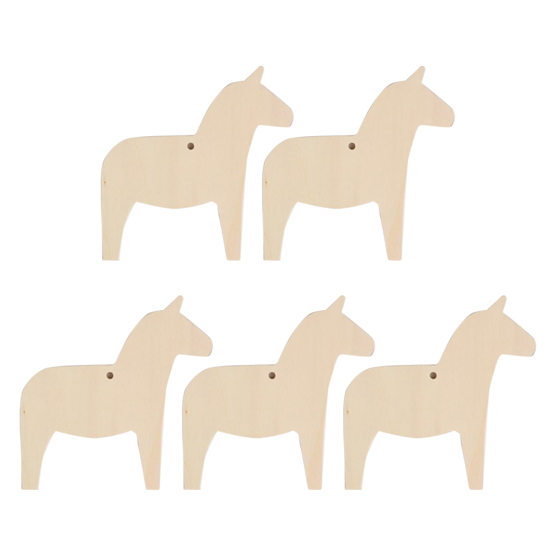 スウェーデン伝統の民芸品、ダーラヘスト(英語はダーラナホース)の形のプレートオーナメント5枚セット。