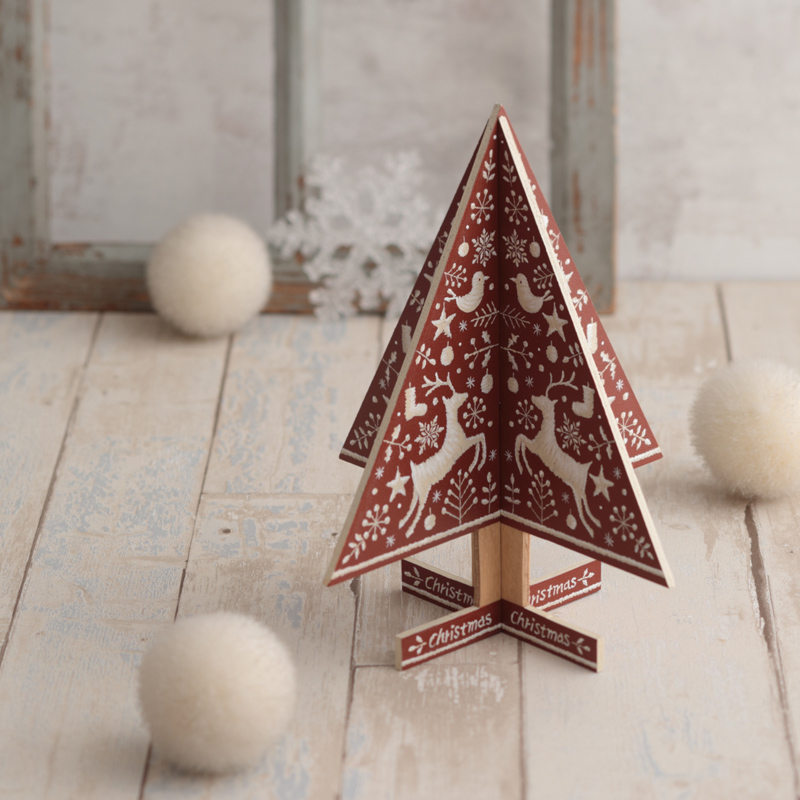 2枚の板を合わせて立体的なツリーに組み立てます。収納時ははずしてコンパクトに。