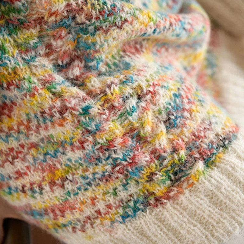 りと締めつつ、ゴム編みを途中で切り替えて