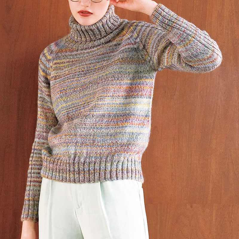 コンパクトなシルエットにしっかりとしたター トルネックを合わせて、おしゃれ感のある フォルムに。袖山のリブがタートルや裾のリブ と呼応して、単なるシンプルにとどまらない 魅力をプラスします。着やすいラグランスリー ブを、シックなマルチボーダーで楽しんで。