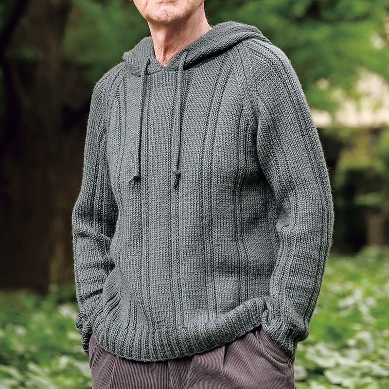 スウェット地のフーデッドパーカーもいいけれど、落ち着いた大人男子にはニットのパーカーが似合います。しっくりと馴染んだアイコードが粋なポイント。帽子をかぶれば、スタイリッシュな渋オジのできあがりです。
