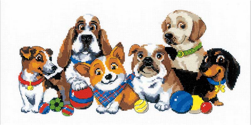 【キット作り方つき】準備は万端! これからショーに参加する可愛いイヌたちを描いたクロスステッチ作品。中級の方へ。