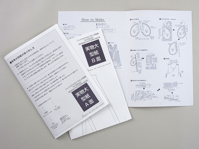 作り方はイラストで丁寧に解説。実物大型紙は2枚ついています。
