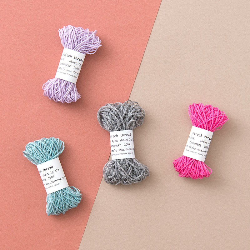 ダーニングに使いやすさを追求したHIKARU NOGUCHI特製のカシミア糸の4色セット。カシミア衣類へのダーニングだけでなく、ウールやコットンのダーニングにも使えます。ウール刺繍や毛糸刺繍にもぴったりの、しっとりと柔らかい100%カシミア製のスティッチ糸です。