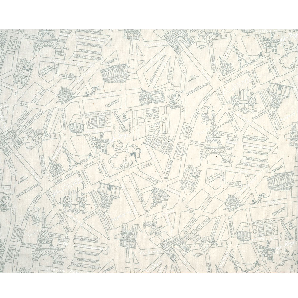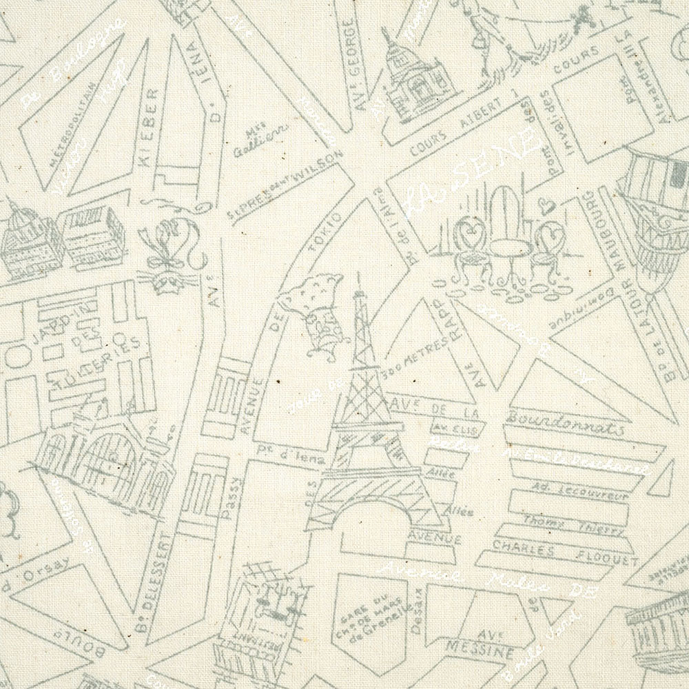 綿殻が入ったナチュラルな生成り地に、細いグレーの線でパリの地図をデザイン。エッフェル塔はじめ名所探しも楽しめます。