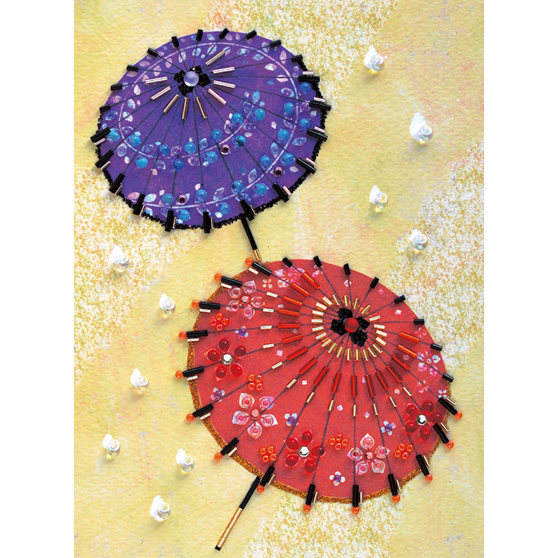 【キット作り方つき】印刷済みイラストの上に、ビーズなどを貼って仕上げるビーズクラフトです。ビーズの配置でモダンを演出する[和傘]のデザインをご用意しました。 【This item does not ship to overseas.】