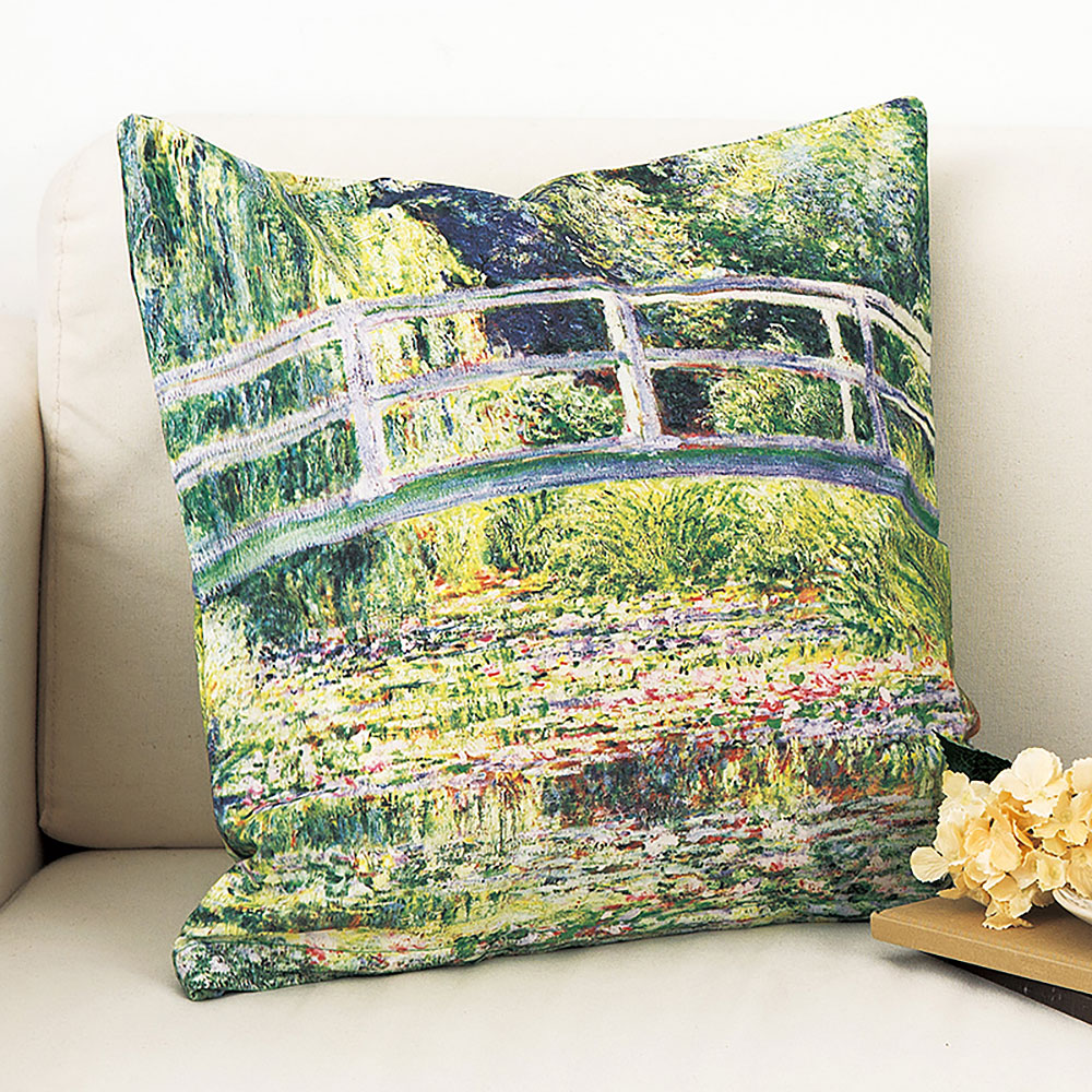 クロード・モネ作「睡蓮の池と日本の庭」をデザインしたクッションカバー