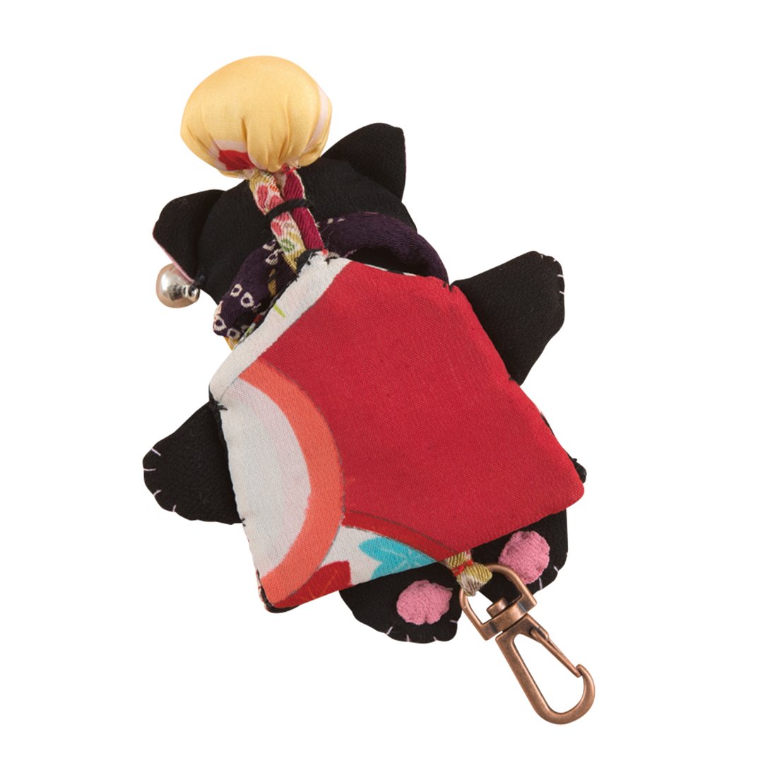 【古裂】【キット作り方つき】パッチリお目々が可愛いクロネコのキーホルダー。洋服の中にスライド可能なナスカンに、鍵を掛ける事ができます。