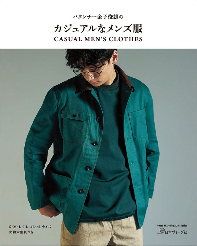 パタンナーとして活躍の金子俊雄さんのメンズ服本第3弾。シャツやTシャツ、ワークパンツ、イージーパンツ、ハンティングベスト、カーディガン、アノラック、カバーオールなど、カジュアルなタウンウエアとして全身コーディネートできるアイテムを15点掲載。今まではS~3Lのサイズ展開でしたが、お問い合わせの多いさらに大きい4Lサイズまで展開します。実物大型紙3枚つき。