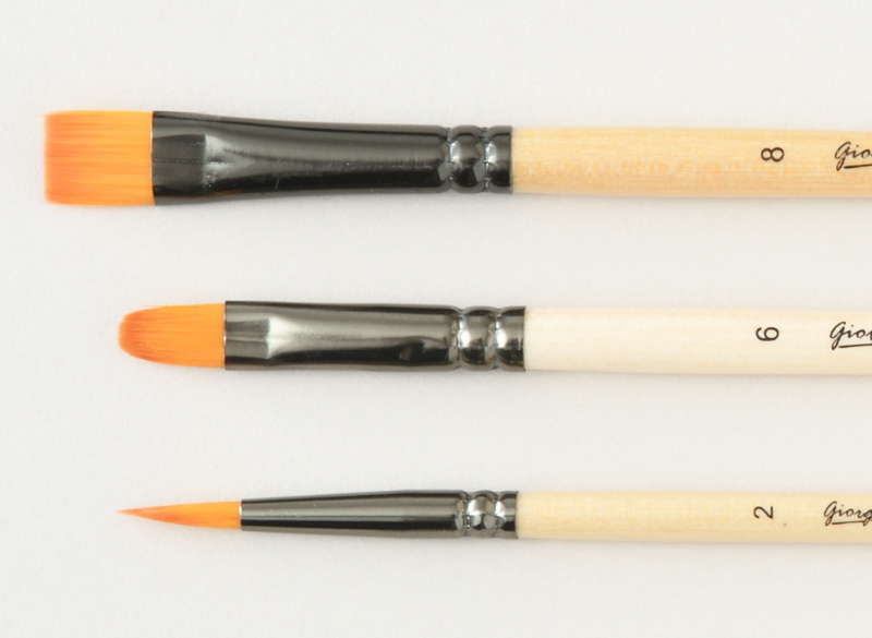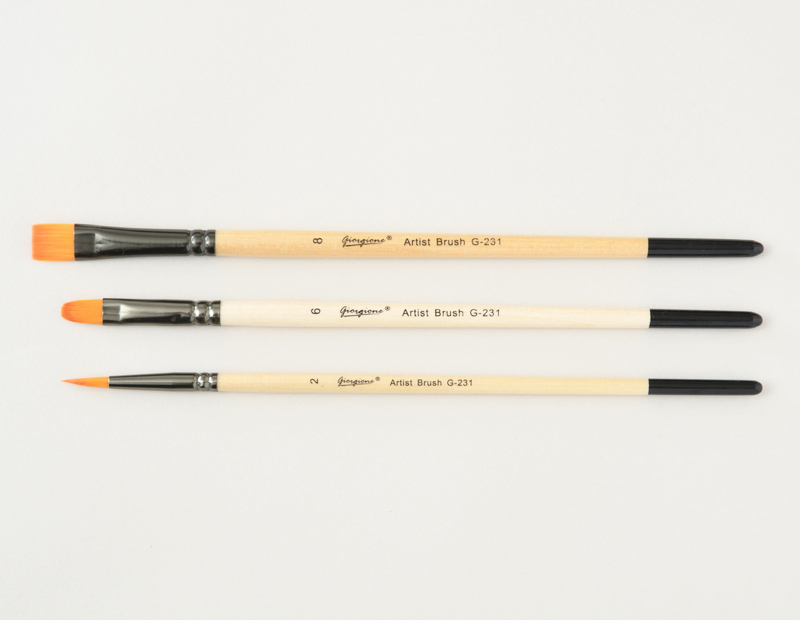 丸筆2号、ラウンド筆6号、平筆8号各1本