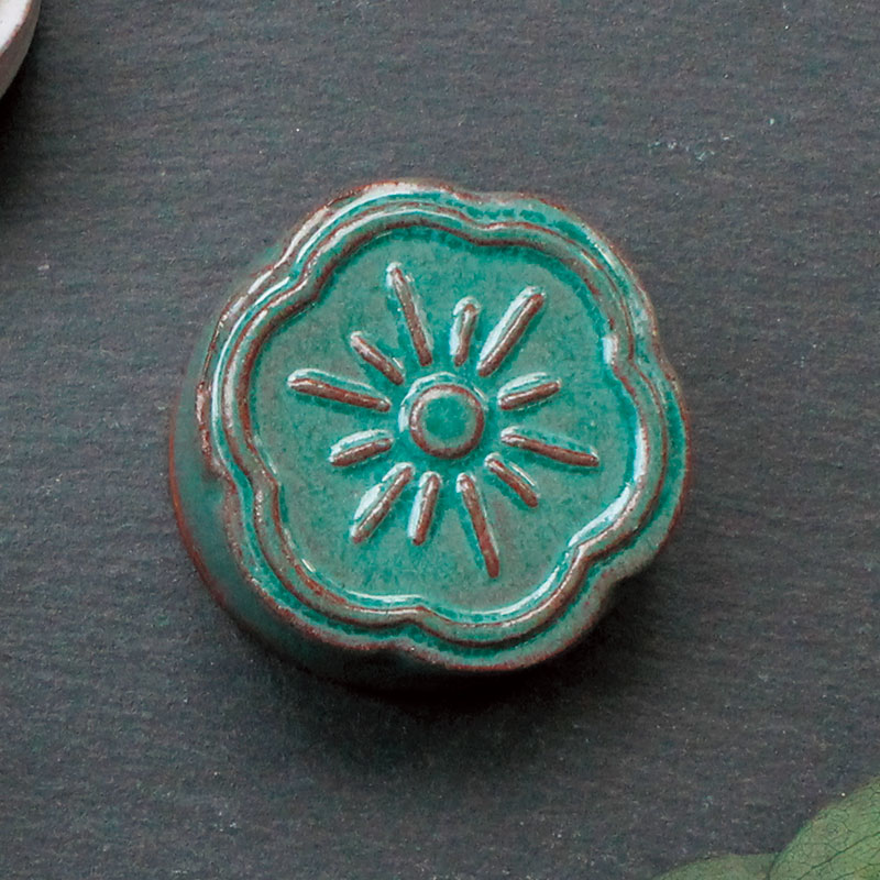 【完成品】日本でも有数の瓦産地、兵庫県淡路島の「淡路瓦」を、心和む花モチーフの針道具に。釉薬の色によって焼き上がりの表情が異なるため、同じ物がふたつとありません。