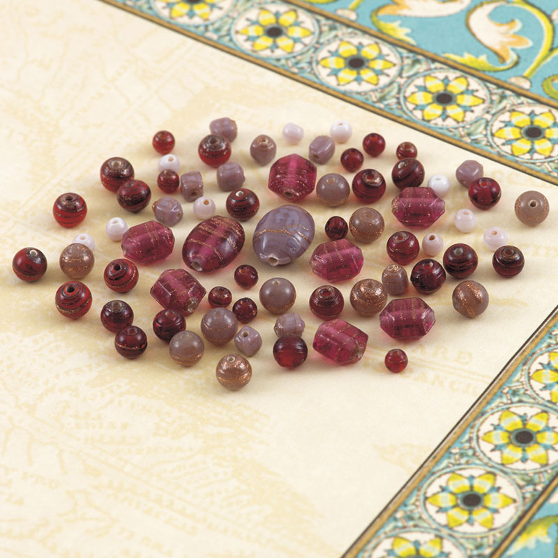 ハンドメイドのガラスビーズをセットにしました。金のラメがきらめきます。つないでも、1個ずつ作品のポイントにしても楽しめそうです。