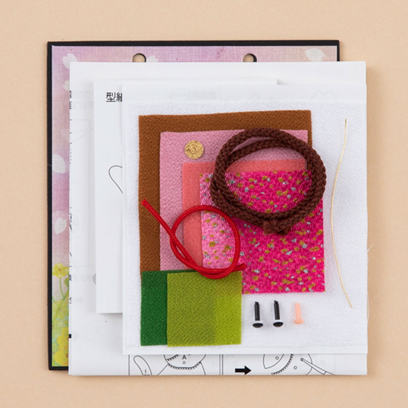 ちりめんを使ってふっくらとした押し絵が作れるキットです。ウレタン付き型紙は型抜き済みなので切り離すだけで簡単に作ることができます。