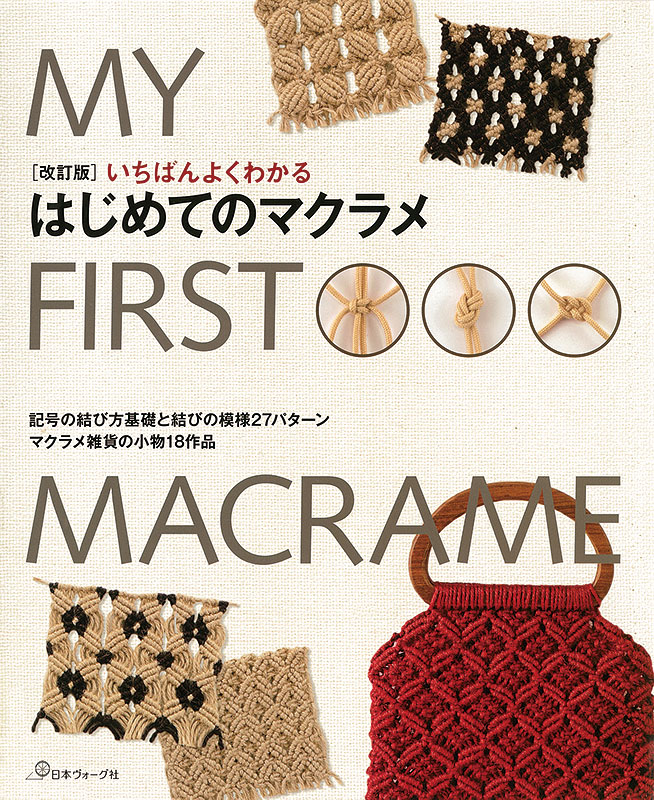 初心者向けのマクラメレッスンブックをリニューアル編集した改訂版です。結びの基礎は、カットと写真プロセスで丁寧に解説され、初心者からマニアまで、アプローチしやすい構成に。23の結び方テクニックと27パターンのマクラメ模様、バッグやインテリア小物といったマクラメ雑貨18作品を掲載。