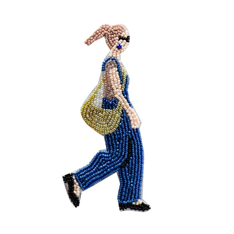 【キット作り方つき】スタイリッシュな女性のビーズ刺しゅうブローチです。図案印刷済みフェルトに直接刺して作ります。糸と針もついているのですぐに作り始められられます。