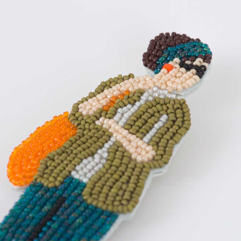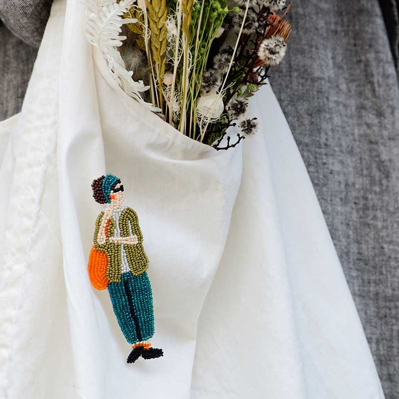 【キット作り方つき】スタイリッシュな女性のビーズ刺しゅうブローチです。図案印刷済みフェルトに直接刺して作ります。糸と針もついているのですぐに作り始められられます。