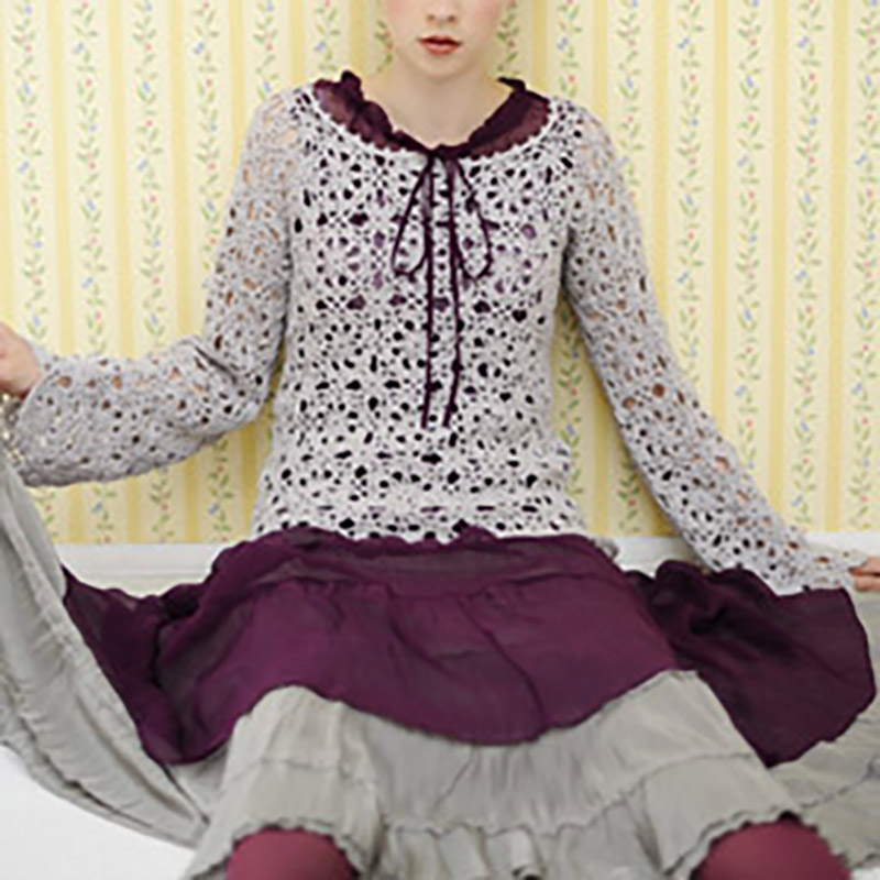 ロマンチックなコーディネートに、ワンピースやフリルとの相性抜群のクロッシェ・ウエアは、はずせないアイテム。中でも、モチーフをつないだプルオーバーの華やかさは格別です。
