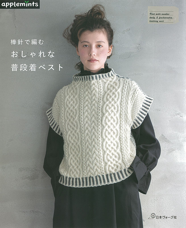 着るだけでファッションのポイントになるおしゃれなベストを提案。まっすぐ編みのものや、定番のアラン模様や人気の編み込み模様から、ロング丈や、フリンジつき、パッチワーク風など幅広く展開。写真での詳しいポイントレッスンつき。