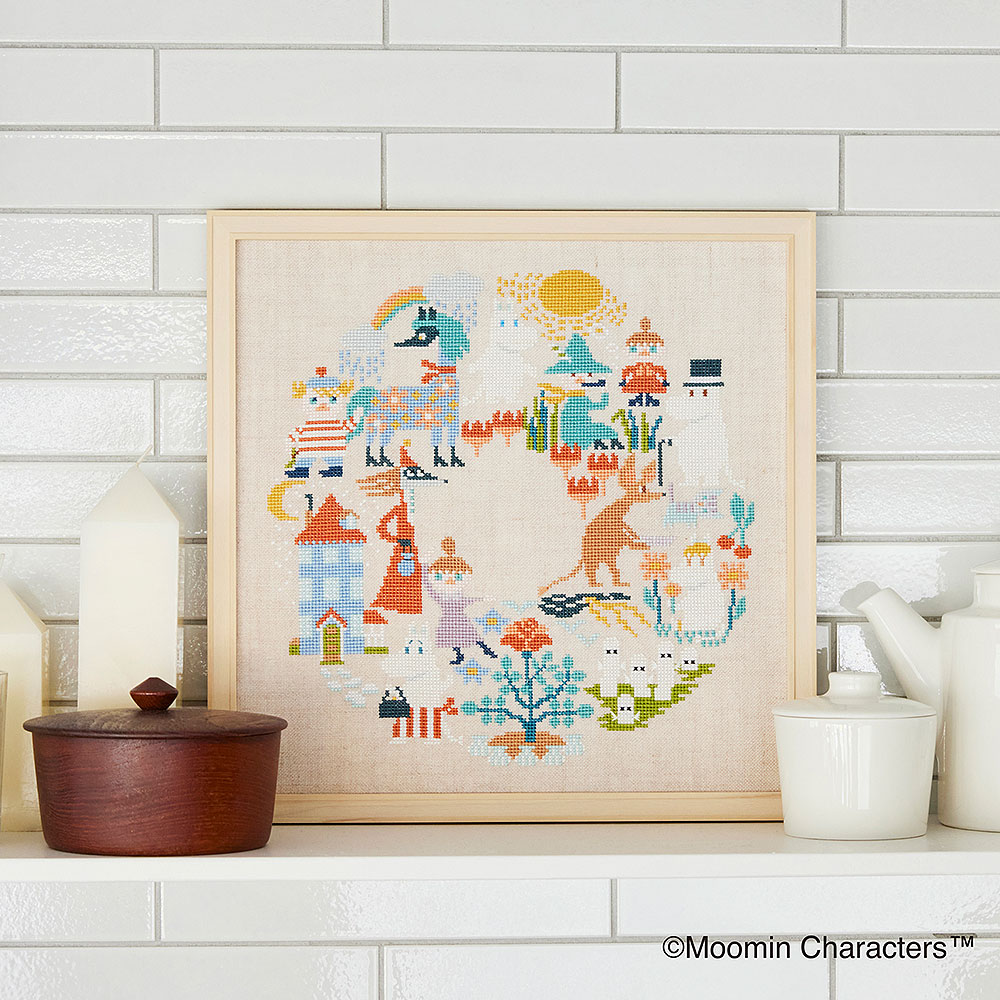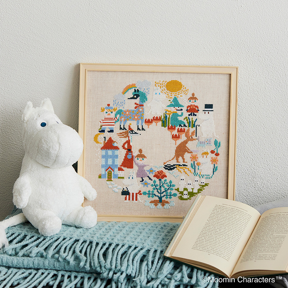 ※キットに額は含まれません。額に入れる場合は、別売の「ムーミン クロスステッチサンプラー 専用額」か30cm角の額をご用意ください。