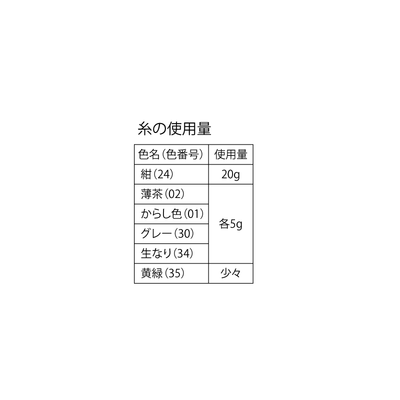 材料:ておりや クーウール 糸の色名・色番号・使用量は図中の表を参照してください。