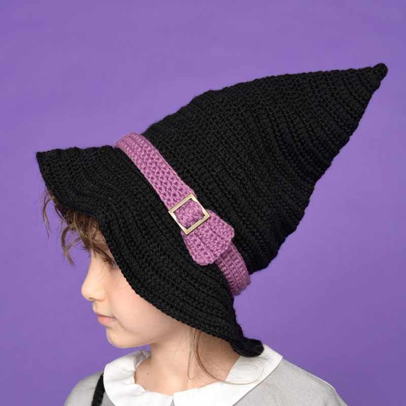 ハロウィンにぴったりな、魔女のトレードマークのとんがり帽は「エナン」と呼ばれ、角を意味すると言われています。パープルのベルトを巻いて、自分らしい魔女スタイルに!