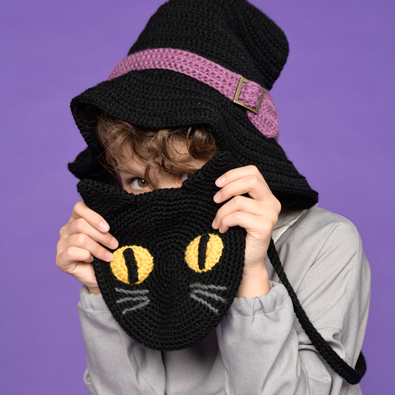 ゴールドの大きい目は、未来を見ることができると信じられてきました。魔女の大事なパートナー黒猫は、バッグにして持ち歩こう。