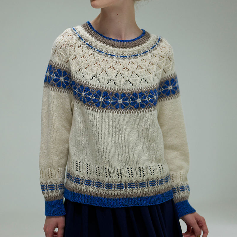 〈レシピ〉編み込み×透かし模様の丸ヨーク