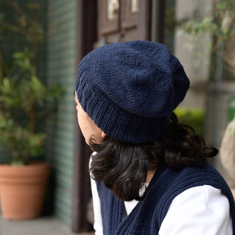 シンプルニットには、上質な素材が似合います。メリヤス編みのキャップとベストのセットには、しっとりと柔らかな肌触りのカシミヤを選びました。どんなシーンにも自信を持って着られる、ワンランク上の着心地が自慢の逸品です。