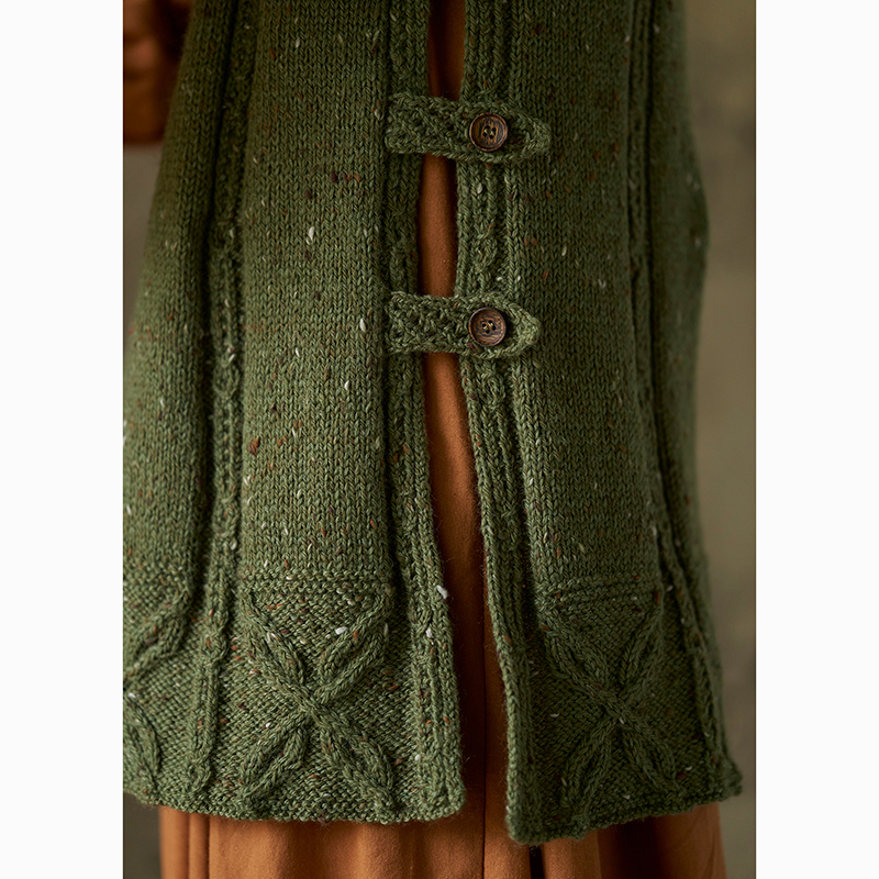 材料:ダイヤモンド毛糸 ダイヤアデル 緑(414)360g/9玉。直径18mm のボタン4 個。
