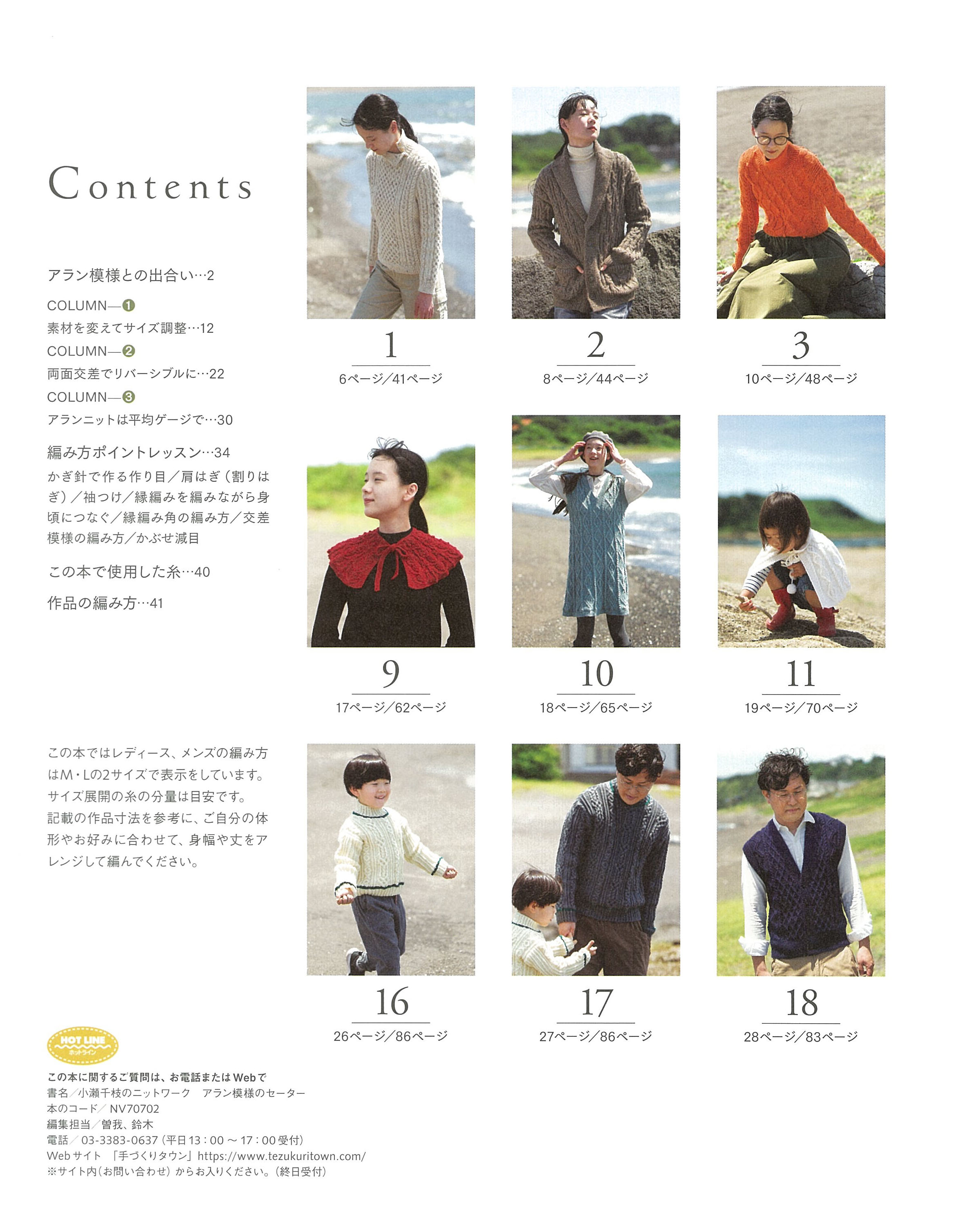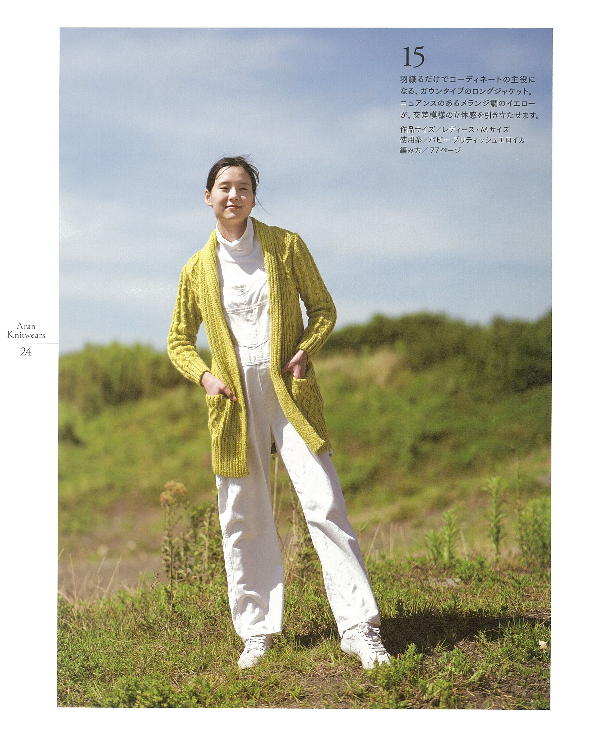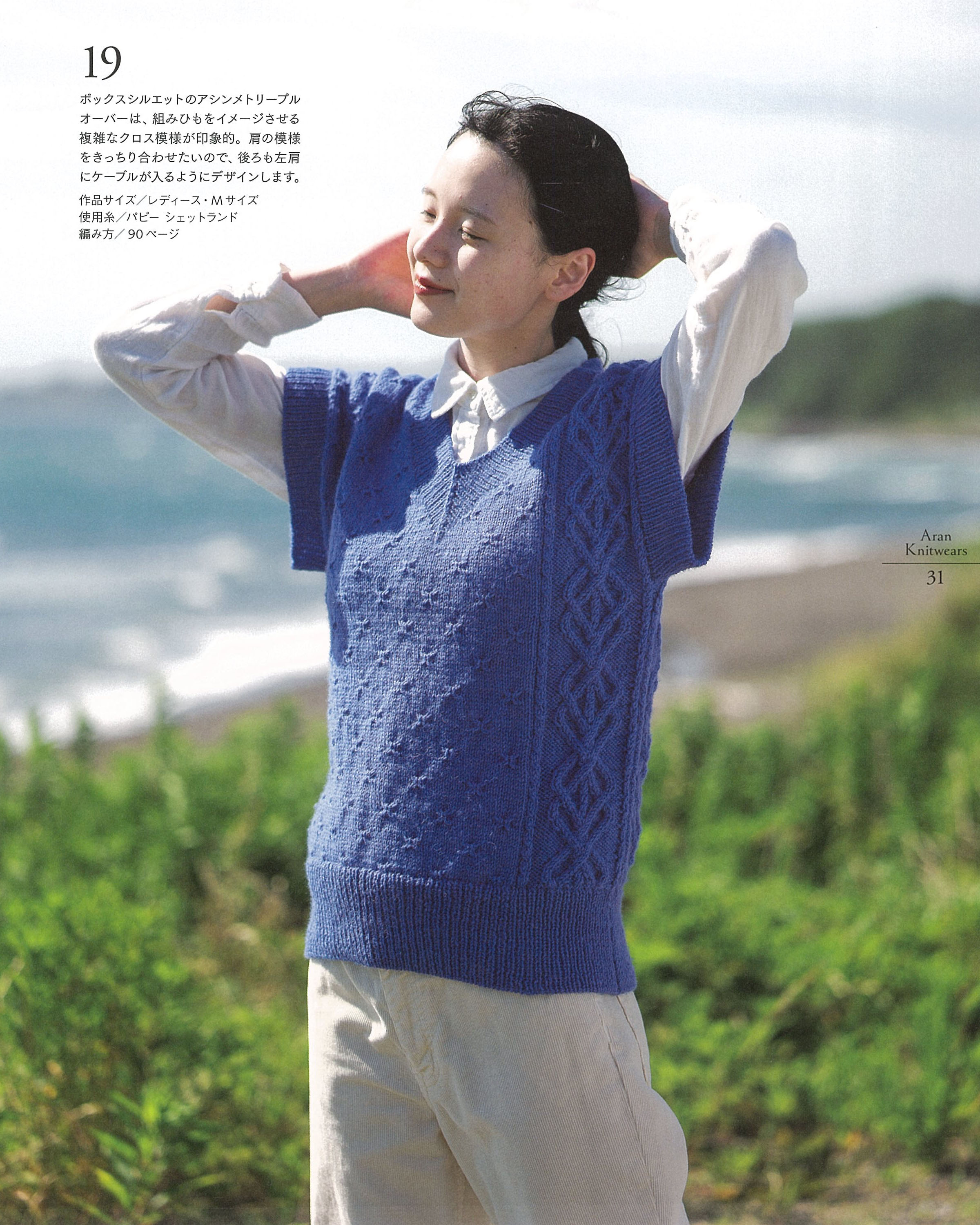 ニット作家・小瀬千枝さんが提案するアラン模様セーターの作品集。人気定番のアラン模様を組み合わせて、著者らしい工夫やコツを作品とともに紹介します。レディースウエアを中心に、メンズとキッズ(5~6才)のセーター、帽子やショールなどの小物を含め21点を掲載。手編みファン必携の1冊。
