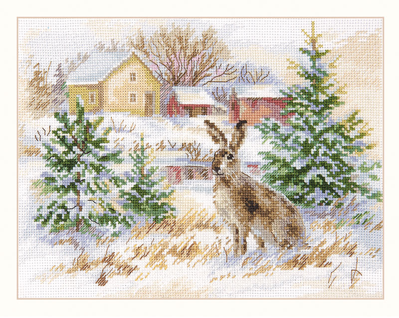 【キット作り方つき】冬の草原に佇む愛らしい野ウサギを描いた、素朴で温かな雰囲気のクロスステッチ作品です。中~上級の方向き。