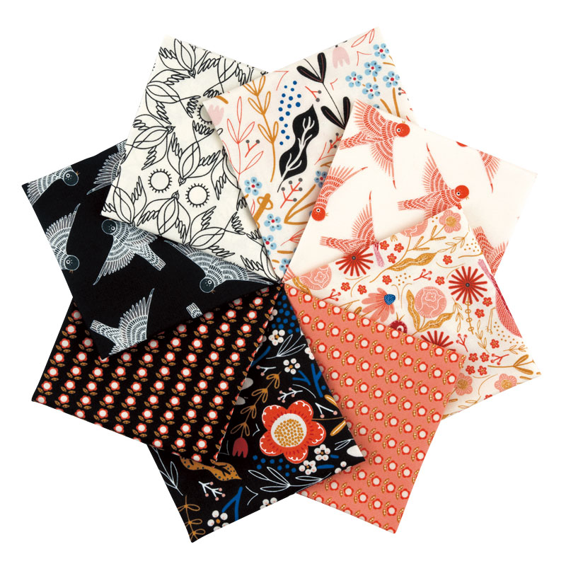 [USA] 鳥や草花をモチーフにした、モダンな色使いのプリント布を集めてセットに。小鳥のさえずりが聞こえてきそうな、動きのある生き生きとしたデザインです。