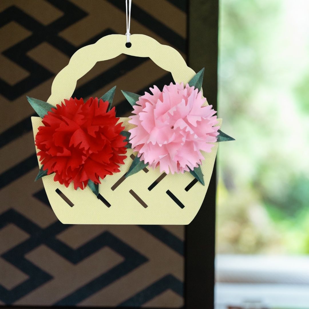 立体切り絵 花カゴ飾り カーネーション