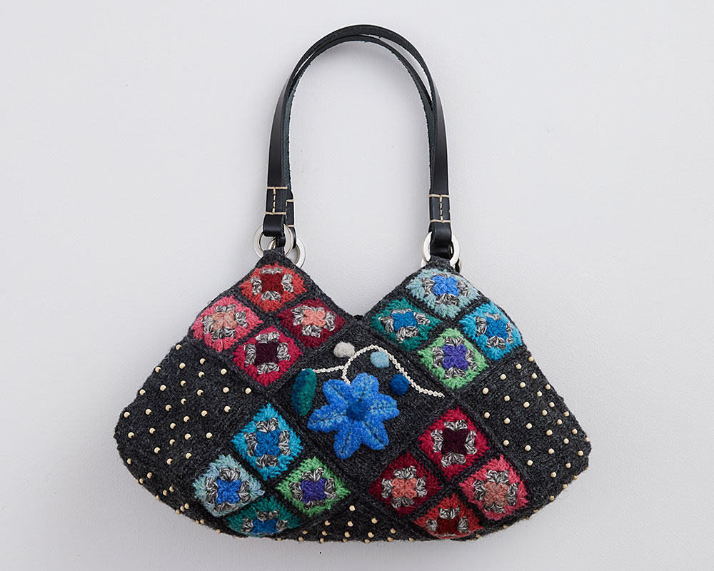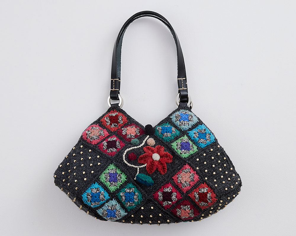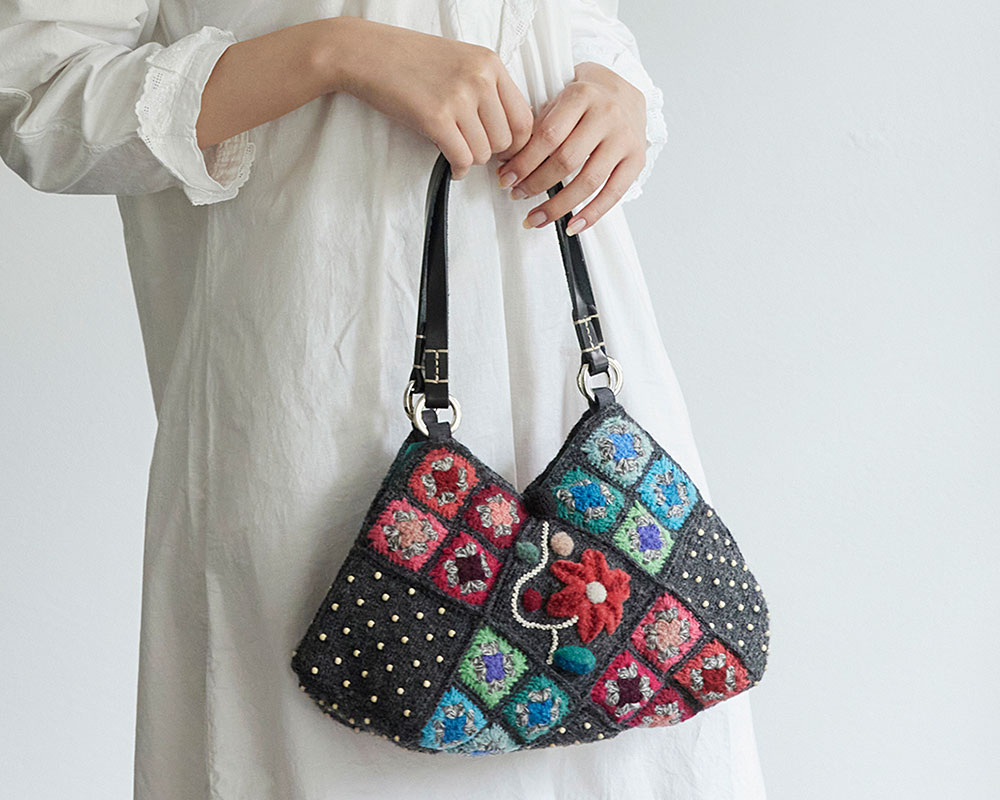 英国製シェットランドヤーンJamieson’s 24色、裏地用には高級感のあるグログラン生地。 チェコ製ウッドビーズ、麻糸、接着芯、シャープ芯、オリジナルの本革の持ち手など、こだわりの材料をセットしました。 (数量限定品)