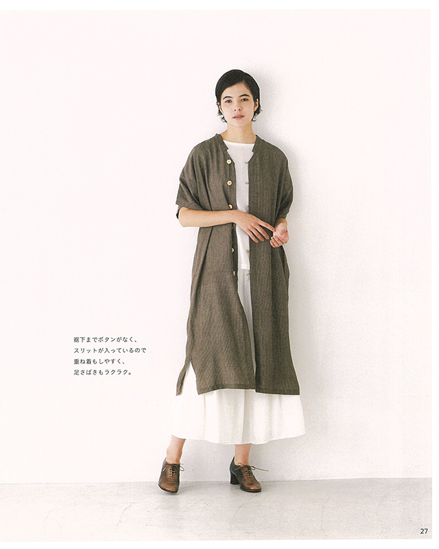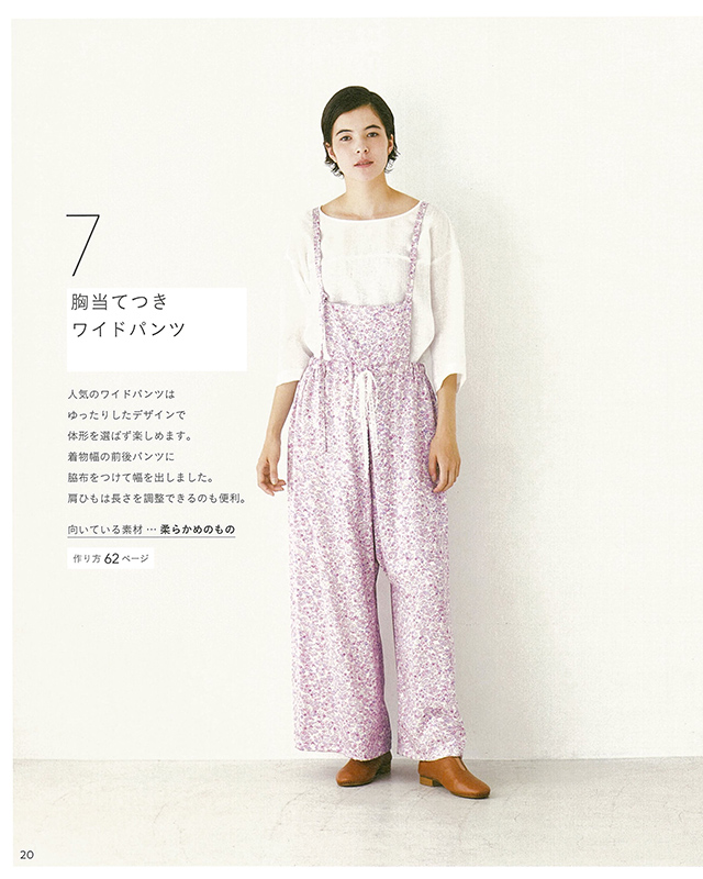 型紙なしでまっすぐ切って縫って作れる、フリーサイズのおしゃれな洋服28点を集めて紹介。幅広い年齢層が着回しやすい、ワンピース、ブラウス、パンツ、スカート、ベスト、コートなどシンプルなアイテムを厳選。ちりめん、綸子、ウール、浴衣地など身近な着物を使用。コーディネート例も掲載。