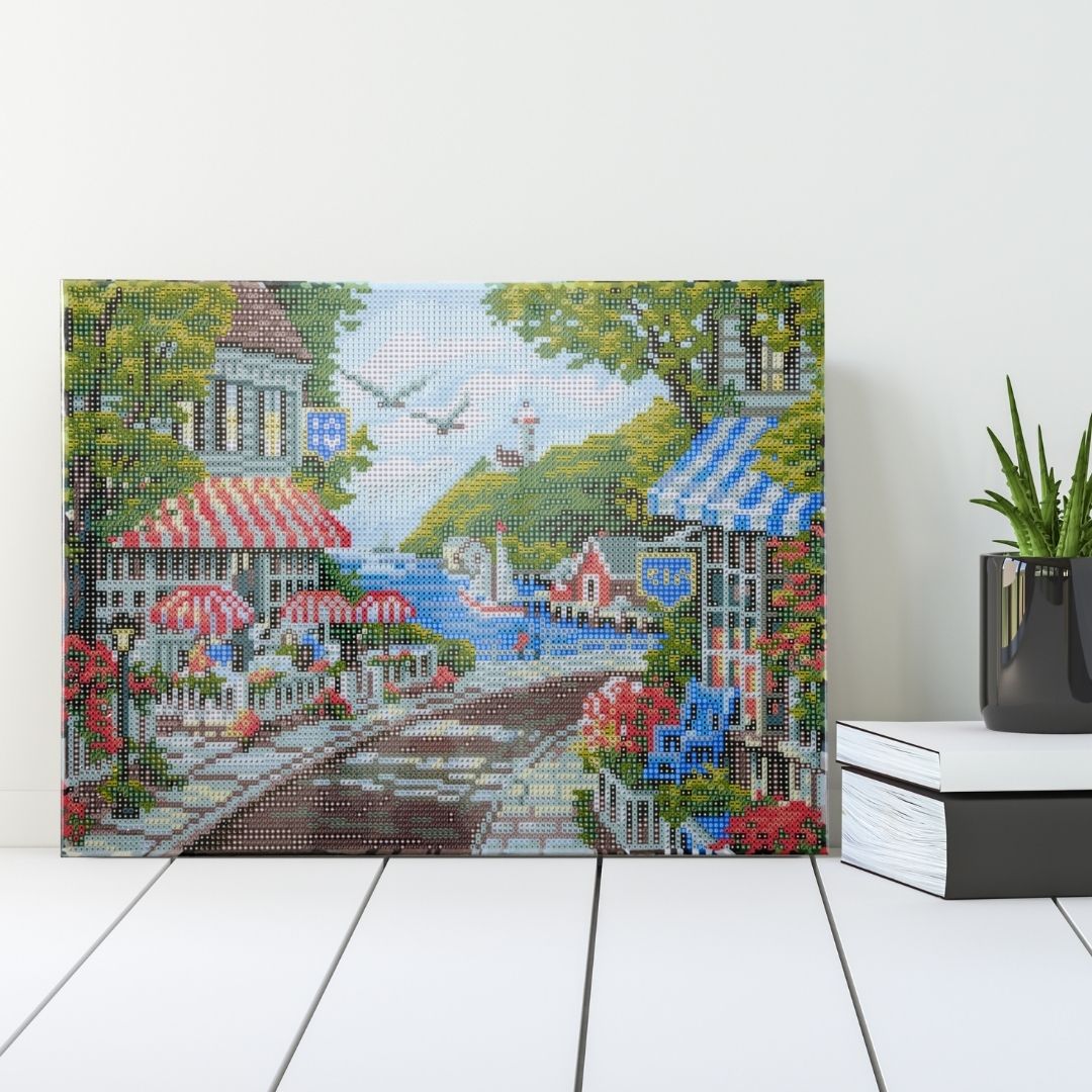 ダイヤモンドフィックスとは、ノリ付きのキャンバスに専用ビーズを貼り付けて絵を完成させるクラフトアートです。