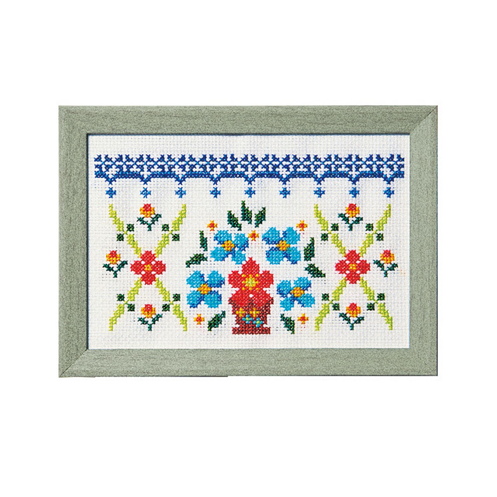 彩葉・ポーリッシュポタリー風クロスステッチ 手づくりキット 赤い花とレースのカーテン